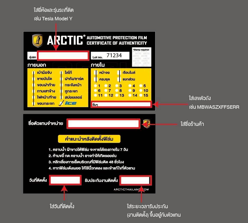 - ตัวแทนฟิล์ม ARCTIC อย่างเป็นทางการทั้งในส่วนฟิล์มกันรอยภายใน จุดเสี่ยง งาน WRAP ภายนอก